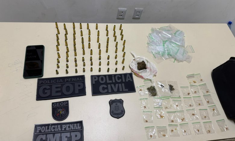 Na residência de um dos tornozelados foram encontradas munições e drogas. Todo material será encaminhado para o Departamento de Polícia Técnica (DPT), para perícia. Após oitiva, o homem e a mulher serão encaminhados para o Conjunto Penal de Feira de Santana.