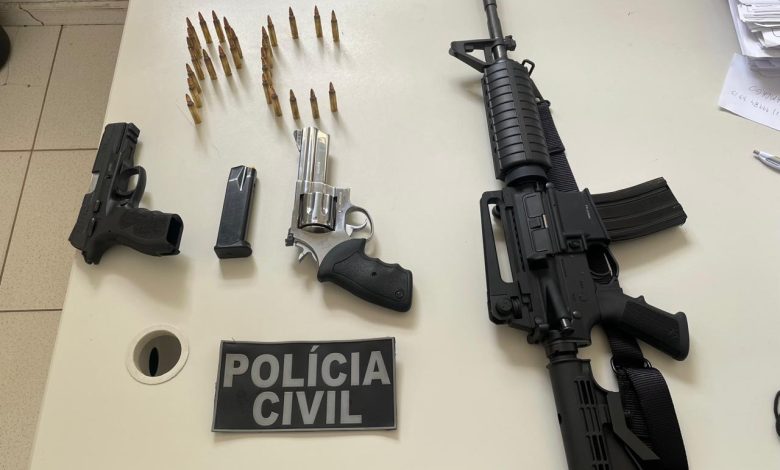 Durante o cumprimento da ordem judicial, foram apreendidas uma pistola calibre 9mm, um fuzil 5.56 e um revólver calibre .38, todos com registro em nome do investigado. A decisão judicial, expedida a partir de inquérito instaurado para apurar crimes de lesão corporal e ameaça, registrados na última sexta-feira (16), também determinou a suspensão dos registros das armas.