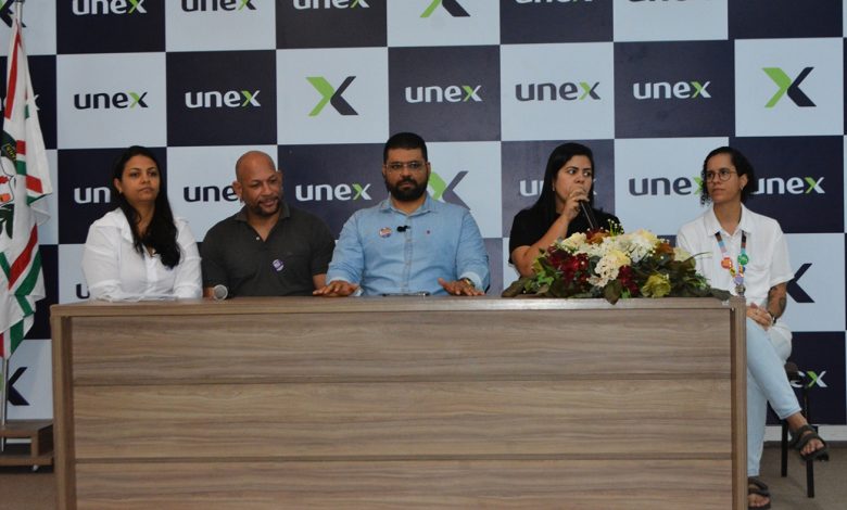 O evento foi realizado no auditório da Unex, em parceria com o Centro de Promoção à Defesa dos Direitos LGBTQIAPN+ (CPDD/LGBTQIAPN+), e contou com a participação do secretário municipal de Saúde, Rodrigo Matos, e da chefe da Atenção Primária, Verônica Cavalcante, na mesa de abertura.
