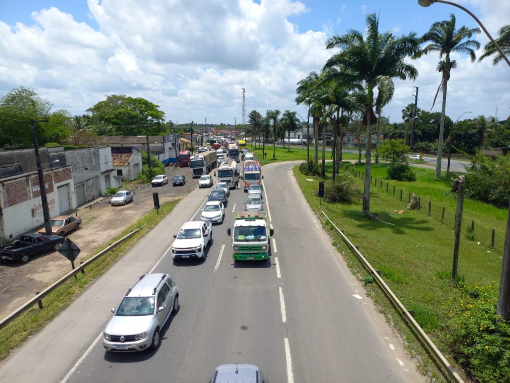 A Polícia Rodoviária Federal (PRF) interditou a pista, mas o trânsito flui normalmente. De acordo com a PRF, não há registro de feridos e as causas do acidente serão investigadas.